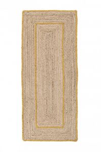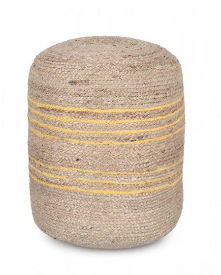 Το προϊόν αποστέλλεται 21-30 ημέρες μετά την παραγγελία ή μπορεί να παραληφθεί από το κατάστημα σε 21-30 ημέρεςΣκαμπώ από φυσική γιούτα με κίτρινες διακοσμητικές ρίγες.