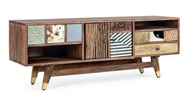 Το προϊόν δεν είναι διαθέσιμο για παραγγελία και θα μπορεί να γίνει παραγγελία μετά από την αναγραφόμενη ημερομηνία.Έπιπλο τηλεόρασης κατασκευασμένο από ξύλο mango σε καφέ χρώμα.