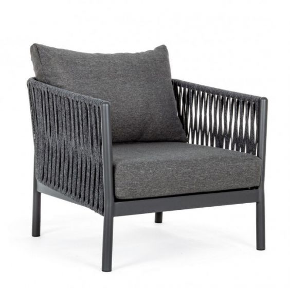 Το προϊόν δεν είναι διαθέσιμο για παραγγελία και θα μπορεί να γίνει παραγγελία μετά από την αναγραφόμενη ημερομηνία.Πολυθρόνα εξωτερικού χώρου από αλουμίνιο ανθρακί χρώματος με φινίρισμα ηλεκτροστατικής βαφής και επένδυση από σχοινί tetoron.