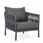 Διαθέτει γκρι μαξιλάρια με αποσπώμενο κάλυμμα από συνθετικό ύφασμα OLEFIN (100% πολυπροπυλένιο), ανθεκτικό στη βροχή και στις υπεριώδεις ακτίνες του ήλιου.