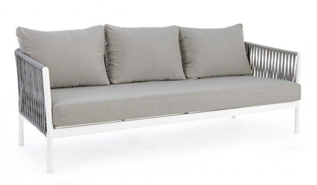 Το προϊόν αποστέλλεται 21-30 ημέρες μετά την παραγγελία ή μπορεί να παραληφθεί από το κατάστημα σε 21-30 ημέρεςΤριθέσιος καναπές εξωτερικού χώρου από αλουμίνιο λευκού χρώματος με φινίρισμα ηλεκτροστατικής βαφής και επένδυση από σχοινί tetoron.