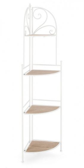 Το προϊόν αποστέλλεται 21-30 ημέρες μετά την παραγγελία ή μπορεί να παραληφθεί από το κατάστημα σε 21-30 ημέρεςΡουστίκ γωνιάκη ραφιέρα τεσσάρων επιπέδων από mdf και μέταλλο, με επένδυση ηλεκτροστατικής βαφής σε λευκό χρώμα.