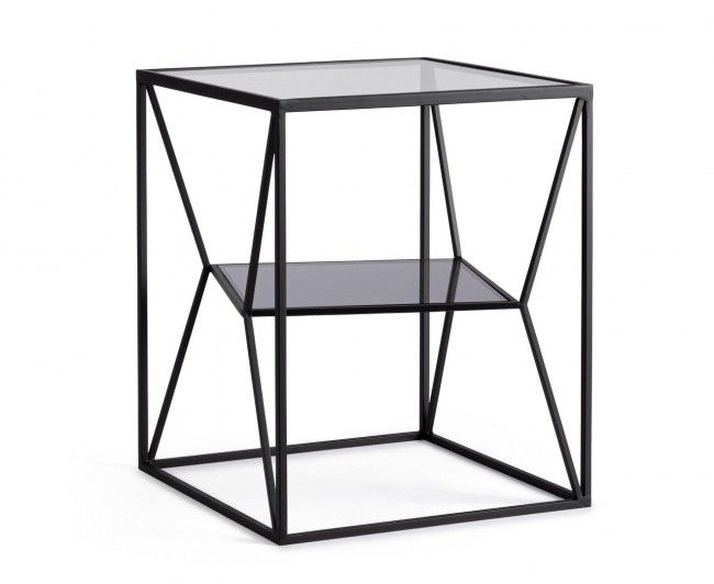 Το προϊόν αποστέλλεται 21-30 ημέρες μετά την παραγγελία ή μπορεί να παραληφθεί από το κατάστημα σε 21-30 ημέρεςΒοηθητικό τραπέζι με μεταλλικό σκελετό σε μαύρη απόχρωση και δύο επιφάνειες από γυαλί ασφαλείας (tempered glass), μία διάφανη και μία φιμέ.