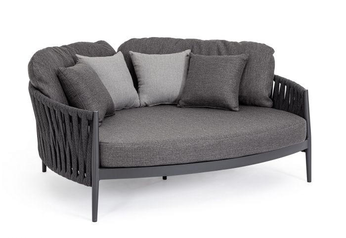 Το προϊόν δεν είναι διαθέσιμο για παραγγελία και θα μπορεί να γίνει παραγγελία μετά από την αναγραφόμενη ημερομηνία.Καναπές-κρεβάτι εξωτερικού χώρου από αλουμίνιο ανθρακί χρώματος με φινίρισμα ηλεκτροστατικής βαφής και επένδυση από σχοινί tetoron.