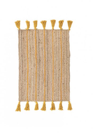 Το προϊόν αποστέλλεται 21-30 ημέρες μετά την παραγγελία ή μπορεί να παραληφθεί από το κατάστημα σε 21-30 ημέρεςΧαλί με φυσική σύνθεση από γιούτα και κίτρινες διακοσμητικές φουντίτσες.