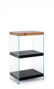 Στην πίσω και στην δεξιά πλευρά είναι κατασκευασμένο από διάφανο γυαλί ασφαλείας (tempered glass) πάχους 10 χιλιοστών που συγκρατεί δύο ράφια.
