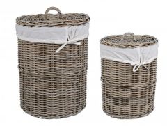 Το προϊόν αποστέλλεται 21-30 ημέρες μετά την παραγγελία ή μπορεί να παραληφθεί από το κατάστημα σε 21-30 ημέρεςΠλεκτά καλάθια απλύτων από ρατάν, kubu και βαμβακερό ύφασμα σε σετ των δύο τεμαχίων.