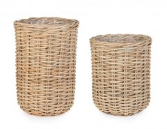 Το προϊόν αποστέλλεται 21-30 ημέρες μετά την παραγγελία ή μπορεί να παραληφθεί από το κατάστημα σε 21-30 ημέρεςΚαλάθια αποθήκευσης με πλέξη από ρατάν σε φυσική-γκρι απόχρωση. Διατίθενται σε σετ των δύο τεμαχίων.
