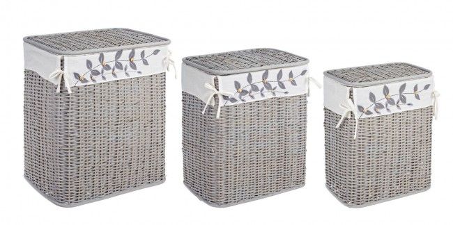 Το προϊόν αποστέλλεται 21-30 ημέρες μετά την παραγγελία ή μπορεί να παραληφθεί από το κατάστημα σε 21-30 ημέρεςΚαλάθια απλύτων με πλέξη από μπαμπού και ρατάν γκρι χρώματος. Διατίθενται σε σετ των τριών τεμαχίων.
