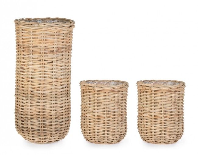 Το προϊόν αποστέλλεται 21-30 ημέρες μετά την παραγγελία ή μπορεί να παραληφθεί από το κατάστημα σε 21-30 ημέρεςΚαλάθια αποθήκευσης με πλέξη από ρατάν στην φυσική του απόχρωση. Διατίθενται σε σετ των τριών τεμαχίων.