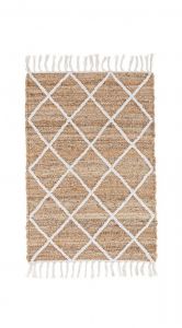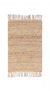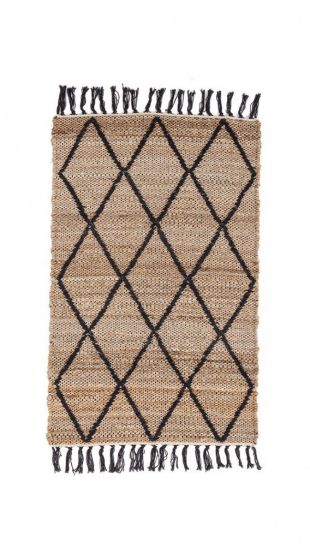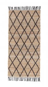 Το προϊόν είναι διαθέσιμο στην αποθήκη μας και αποστέλλεται την ίδια ή την επόμενη ημέρα. Μπορείτε επίσης να το παραλάβετε άμεσα από το κατάστημά μας.Χαλί από φυσική γιούτα με διακοσμητικό σχέδιο ρόμβων και κρόσσια σε μαύρη απόχρωση.