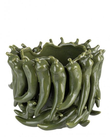 Το προϊόν αποστέλλεται 21-30 ημέρες μετά την παραγγελία ή μπορεί να παραληφθεί από το κατάστημα σε 21-30 ημέρεςΚεραμικό βάζο σε πράσινη απόχρωση διακοσμημένο περιμετρικά με ανάγλυφες πιπεριές.