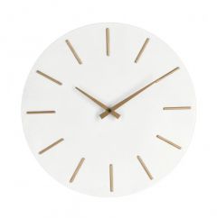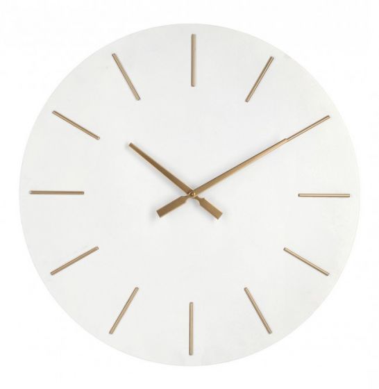 Το προϊόν αποστέλλεται 21-30 ημέρες μετά την παραγγελία ή μπορεί να παραληφθεί από το κατάστημα σε 21-30 ημέρεςΡολόι τοίχου από MDF λευκού χρώματος με μεταλλικούς δείκτες σε χρυσή απόχρωση ώστε να κάνουν μια ενδιαφέρουσα αντίθεση.