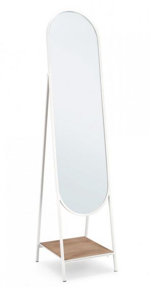 Το προϊόν δεν είναι διαθέσιμο για παραγγελία και θα μπορεί να γίνει παραγγελία μετά από την αναγραφόμενη ημερομηνία.Καθρέπτης δαπέδου από μέταλλο λευκού χρώματος με ένα ράφι από MDF.