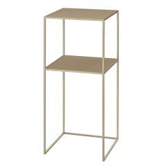 Το τραπέζι σαλονιού της σειράς FERA, κατασκευασμένο από μπεζ μέταλλο με επένδυση ηλεκτροστατικής βαφής, προσφέρει χώρο για διακοσμητικά αντικείμενα, ποτά και σνακ. Το ράφι του είναι ιδανικό για βιβλία, περιοδικά ή ένα τάμπλετ.