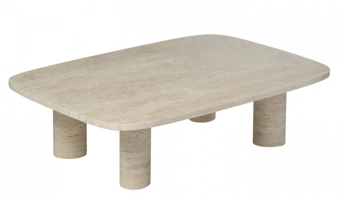 Το προϊόν αποστέλλεται 15-21 ημέρες μετά την παραγγελία ή μπορεί να παραληφθεί από το κατάστημα σε 15-21 ημέρες.Τραπέζι σαλονιού VOLOS από τραβερτίνη, σχεδιασμένο από τον Sebastian Herkner.