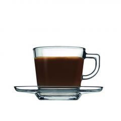 Το προϊόν αποστέλλεται 2-3 ημέρες μετά την παραγγελία ή μπορεί να παραληφθεί από το κατάστημα σε 2-3 ημέρες.Διάφανο φλυτζάνι για εσπρέσο και πιατάκι της σειράς "Carre" από γυαλί ασφαλείας.