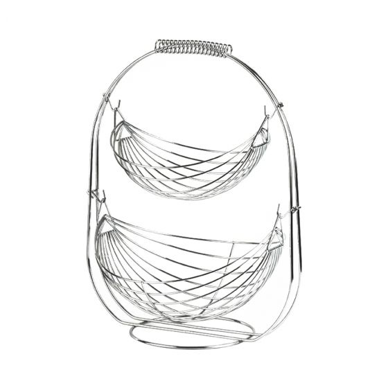 Το προϊόν αποστέλλεται 2-3 ημέρες μετά την παραγγελία ή μπορεί να παραληφθεί από το κατάστημα σε 2-3 ημέρες.Διπλό καλάθι φρούτων από μεταλλικό πλέγμα σε χρώμιο.