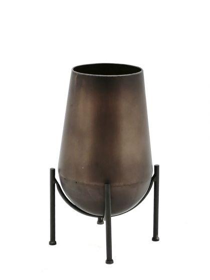 Το προϊόν αποστέλλεται 2-3 ημέρες μετά την παραγγελία ή μπορεί να παραληφθεί από το κατάστημα σε 2-3 ημέρες.Μεταλλικό βάζο μπρονζέ χρώματος σε stand που μπορεί να τοποθετηθεί σαν επιτραπέζιο ή επιδαπέδιο διακοσμητικό οπουδήποτε στον χώρο σας.