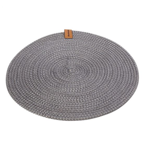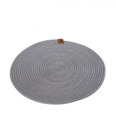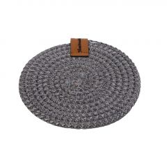 Το προϊόν αποστέλλεται 2-3 ημέρες μετά την παραγγελία ή μπορεί να παραληφθεί από το κατάστημα σε 2-3 ημέρες.Στρογγυλό χαλί από υφασμάτινο σχοινί γκρι χρώματος με δερμάτινη λεπτομέρεια.