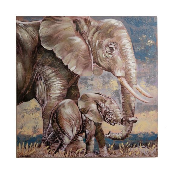 Το προϊόν αποστέλλεται 4-7 ημέρες μετά την παραγγελία ή μπορεί να παραληφθεί από το κατάστημα σε 4-7 ημέρες.Ελαιογραφία σε τυπωμένο καμβά που απεικονίζει ελέφαντες σε ένα πολύχρωμο φόντο.