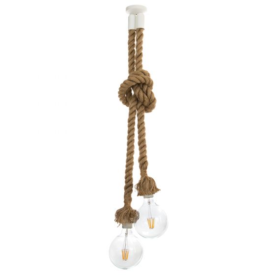 Το προϊόν αποστέλλεται 2-3 ημέρες μετά την παραγγελία ή μπορεί να παραληφθεί από το κατάστημα σε 2-3 ημέρες.Δίφωτο φωτιστικό οροφής σε vintage στυλ αποτελούμενο από σχοινί με κόμπο σε φυσικό χρώμα και μεταλλική λευκή βάση.