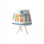 Το προϊόν αποστέλλεται 2-3 ημέρες μετά την παραγγελία ή μπορεί να παραληφθεί από το κατάστημα σε 2-3 ημέρες.Παιδικό επιτραπέζιο φωτιστικό με πλαστική βάση λευκού χρώματος και υφασμάτινο καπέλο με θέμα το αερόστατο.