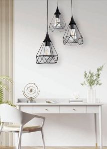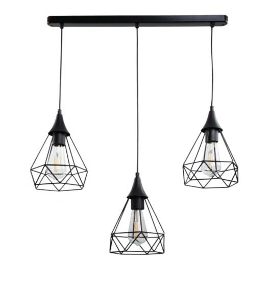 Το προϊόν αποστέλλεται 2-3 ημέρες μετά την παραγγελία ή μπορεί να παραληφθεί από το κατάστημα σε 2-3 ημέρες.Τρίφωτο φωτιστικό οροφής σε διάταξη ράγας με μεταλλικό πλέγμα μαύρου χρώματος σε σχήμα διαμαντιού.