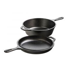 *Το Seasoning είναι η διαδικασία κατά την οποία το μαντεμένιο σκεύος ψήνεται με φυτικό λάδι αποκτώντας ένα φυσικό αντικολλητικό φινίρισμα που αντέχει στο χρόνο. Η εταιρεία Lodge εφαρμόζει σε όλα τα μαντεμένια σκεύη της την διαδικασία Seasoning χρησιμοποιώντας αποκλειστικά λάδι σόγιας. Για ορισμένα φαγητά κατά την πρώτη χρήση ίσως χρειαστεί λίγο παραπάνω λάδι.