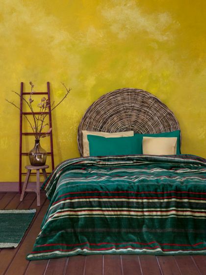Η κουβέρτα Tinsel έχει υπέροχες αποχρώσεις από βαθύ πράσινο, κόκκινο και ζεστό μπεζ, σε ένα διαχρονικό ριγέ σχέδιο. Ανήκει στα κλασικά σχέδια του χειμώνα, εκείνα που μας ταξιδεύουν σε γιορτινές εικόνες που θυμίζουν παραμύθι.