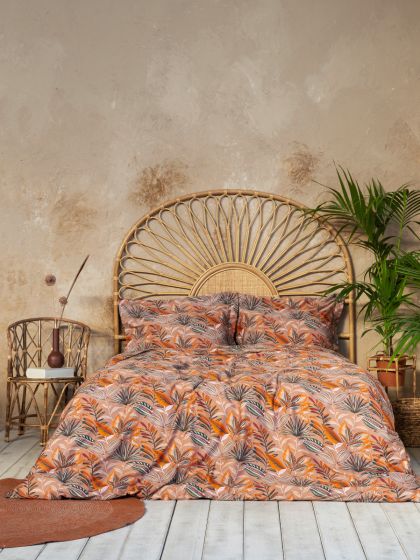 Το σετ σεντόνια Satya είναι φιλοτεχνημένο με τις φυλλωσιές των δέντρων σε υπέροχο σχέδιο urban jungle αισθητικής με boho επιρροές.