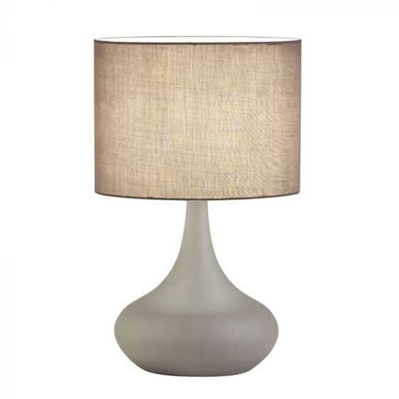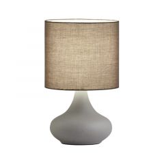 Το προϊόν αποστέλλεται 2-3 ημέρες μετά την παραγγελία ή μπορεί να παραληφθεί από το κατάστημα σε 2-3 ημέρες.Μοντέρνο επιτραπέζιο φωτιστικό με γκρι καπέλο από πλαστικοποιημένο ύφασμα και μεταλλική γκρι βάση.