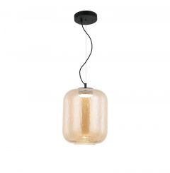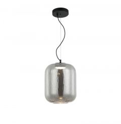 Το προϊόν δεν είναι διαθέσιμο για παραγγελία και θα μπορεί να γίνει παραγγελία μετά από την αναγραφόμενη ημερομηνία.Κρεμαστό φωτιστικό οροφής με γυαλί φιμέ χρώματος σε σχήμα καμπάνας και μεταλλικό διαχύτη φωτός εσωτερικά του γυαλιού.