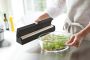 Ένα εργαλείο εύκολο στην χρήση, απλά τοποθετείτε το ρολό μέσα στην θήκη, κλείνετε το καπάκι και τραβώντας τη μεμβράνη ή το αλουμινόχαρτο αντίστοιχα, στο μήκος που θέλετε, αυτό αποκόπτεται χάρη στις πρακτικές άκρες με δοντάκια που έχει στο τελείωμα.