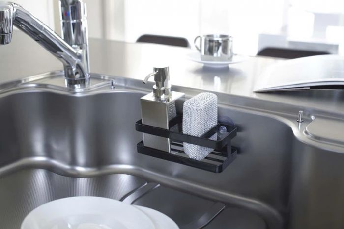 Στο πίσω μέρος διαθέτει δύο ισχυρές βεντούζες που της επιτρέπουν να παραμένει σταθερή πάνω στα τοιχώματα του νεροχύτη.