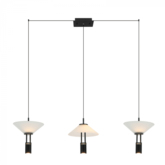 Διαθέτει γυάλινους διαχύτες σε σχήνα κώνου και κυλινδρικά σποτάκια στην κάτω πλευρά από αλουμίνιο μαύρου ματ χρώματος.