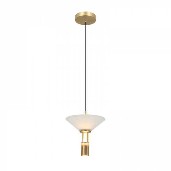 Διαθέτει ένα γυάλινο διαχύτη σε σχήνα κώνου και ένα κυλινδρικό σποτάκι στην κάτω πλευρά από αλουμίνιο χρυσού ματ χρώματος.
