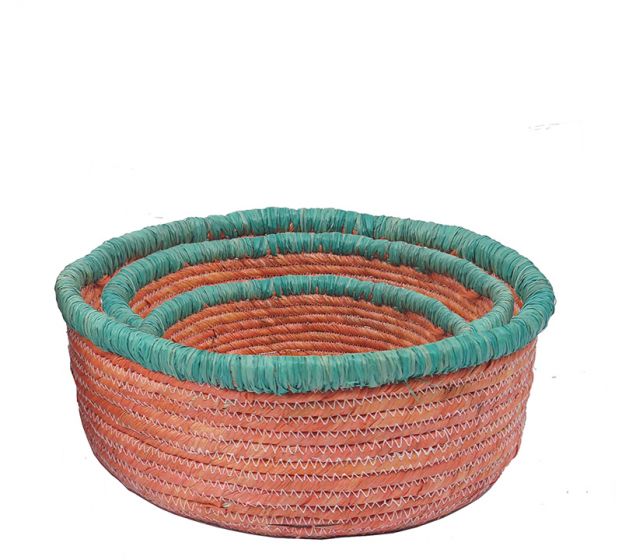 Το προϊόν αποστέλλεται 2-3 ημέρες μετά την παραγγελία ή μπορεί να παραληφθεί από το κατάστημα σε 2-3 ημέρες.Στρογγυλά διακοσμητικά καλάθια με πλέξη από καλαμιά κοραλί χρώματος, που τους δίνουν αυτήν την εκπληκτική tropical και boho εμφάνιση.
