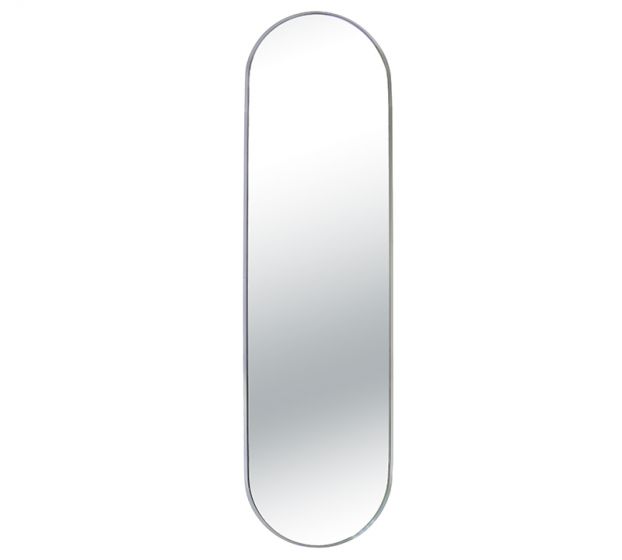 Το προϊόν είναι διαθέσιμο στην αποθήκη μας και αποστέλλεται την ίδια ή την επόμενη ημέρα. Μπορείτε επίσης να το παραλάβετε άμεσα από το κατάστημά μας.Καθρέπτης τοίχου από αλουμίνιο σε ασημί απόχρωση και σε σχέδιο κάψουλα.