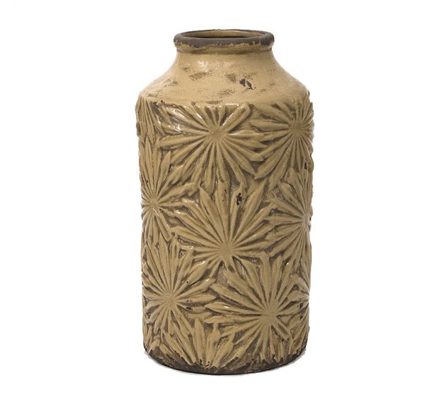 Το προϊόν αποστέλλεται 2-3 ημέρες μετά την παραγγελία ή μπορεί να παραληφθεί από το κατάστημα σε 2-3 ημέρες.Κεραμικό βάζο με ανάγλυφα σχέδια φύλλων φοίνικα σε μπεζ-καφέ χρώμα.