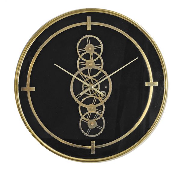 Το προϊόν αποστέλλεται 2-3 ημέρες μετά την παραγγελία ή μπορεί να παραληφθεί από το κατάστημα σε 2-3 ημέρες.Ρολόι τοίχου με μεταλλικό πλαίσιο σε χρυσή-μαύρη απόχρωση και διακοσμητικά γρανάζια.