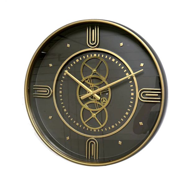 Το προϊόν αποστέλλεται 2-3 ημέρες μετά την παραγγελία ή μπορεί να παραληφθεί από το κατάστημα σε 2-3 ημέρες.Ρολόι τοίχου με μεταλλικό πλαίσιο σε χρυσή-γκρι απόχρωση και διακοσμητικά γρανάζια.