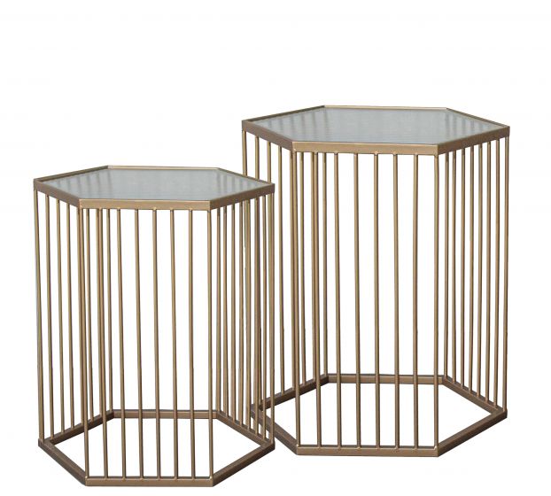 Το προϊόν αποστέλλεται 2-3 ημέρες μετά την παραγγελία ή μπορεί να παραληφθεί από το κατάστημα σε 2-3 ημέρες.Εξάγωνα βοηθητικά τραπέζια σε σετ των δύο τεμαχίων με γυάλινη επιφάνεια και μεταλλική βάση.