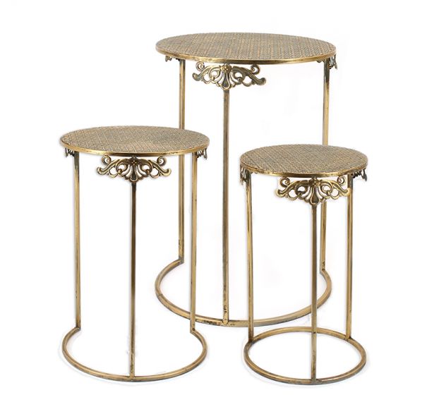 Το προϊόν αποστέλλεται 2-3 ημέρες μετά την παραγγελία ή μπορεί να παραληφθεί από το κατάστημα σε 2-3 ημέρες.Βοηθητικά τραπέζια σε σετ των τριών τεμαχίων κατασκευασμένα από μέταλλο χρυσού χρώματος.