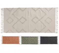 Το προϊόν είναι διαθέσιμο στην αποθήκη μας και αποστέλλεται την ίδια ή την επόμενη ημέρα. Μπορείτε επίσης να το παραλάβετε άμεσα από το κατάστημά μας.Χαλί από βαμβακερό ύφασμα με ανάγλυφο μοτίβο σε τέσσερις αποχρώσεις (Εκρού, Λαδί, Κεραμιδί, Ανθρακί).