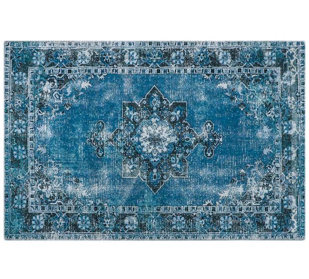 Το προϊόν αποστέλλεται 2-3 ημέρες μετά την παραγγελία ή μπορεί να παραληφθεί από το κατάστημα σε 2-3 ημέρες.Υφασμάτινο χαλί με υπόστρωμα και περσικό σχέδιο balouch σε μπλε απόχρωση (μπροστινή πλευρά: 100% πολυεστερικό, πίσω πλευρά: 100% βαμβακερό).